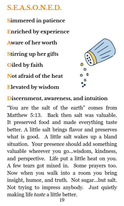 I will be teaching and sharing from this message "Becoming a Seasoned Woman" in Atlanta, March 28 https://www.eventbrite.com/e/women-moving-on-to-greatness-tickets-1982390389018